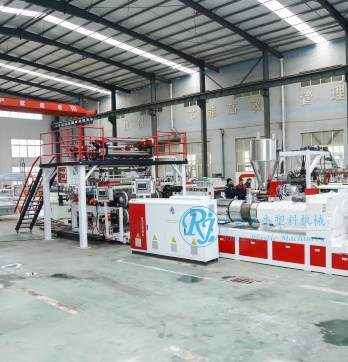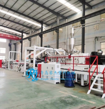 PET片材生產(chǎn)線PET片材生產(chǎn)線是我公司結合多項生產(chǎn)工藝配方體系,鞏固研發(fā)出的一種免結晶干燥新型擠出片材生產(chǎn)線。采用精密三輥壓延工藝技術,減少了原料的粘度,提高了冷卻效率,大大提升片材的品質和產(chǎn)量。? 生產(chǎn)線由平雙擠出機,液壓換網(wǎng),熔體計量泵,模具,斜三輥,定型平臺,靜電消除,表面涂油,牽引機,分割機,收卷機等。> -